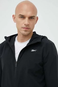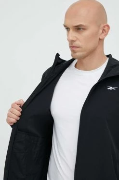 Μπουφάν προπόνησης από τη συλλογή Reebok. Ελαφρύ μοντέλο κατασκευασμένο κατασκευασμένο από υλικό με θερμομονωτικές ιδιότητες.